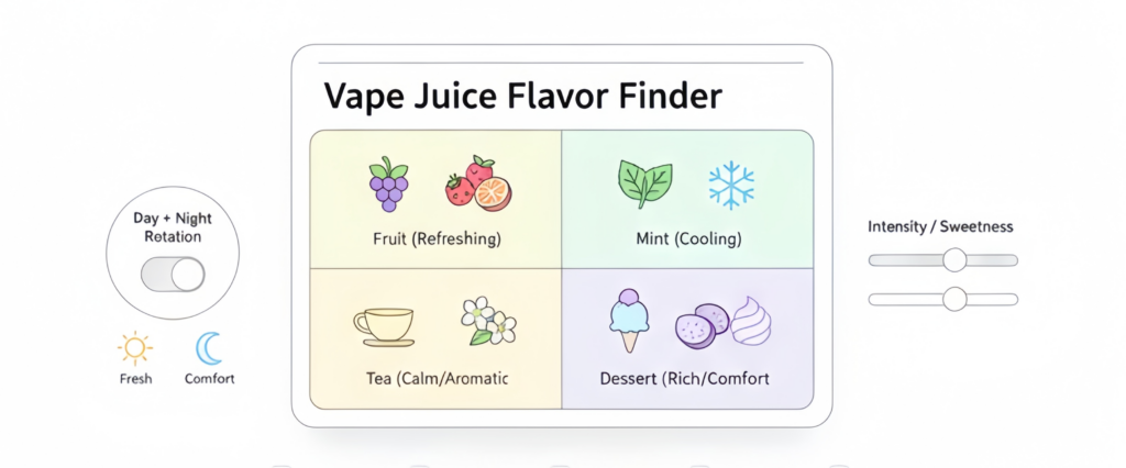 Choosing a vape juice flavor sounds fun—until you see the menu. Fruity, creamy, icy, tea, classic tobacco… it’s exciting, but it can also feel daunting, especially if you’re new or you’re switching from traditional cigarettes.